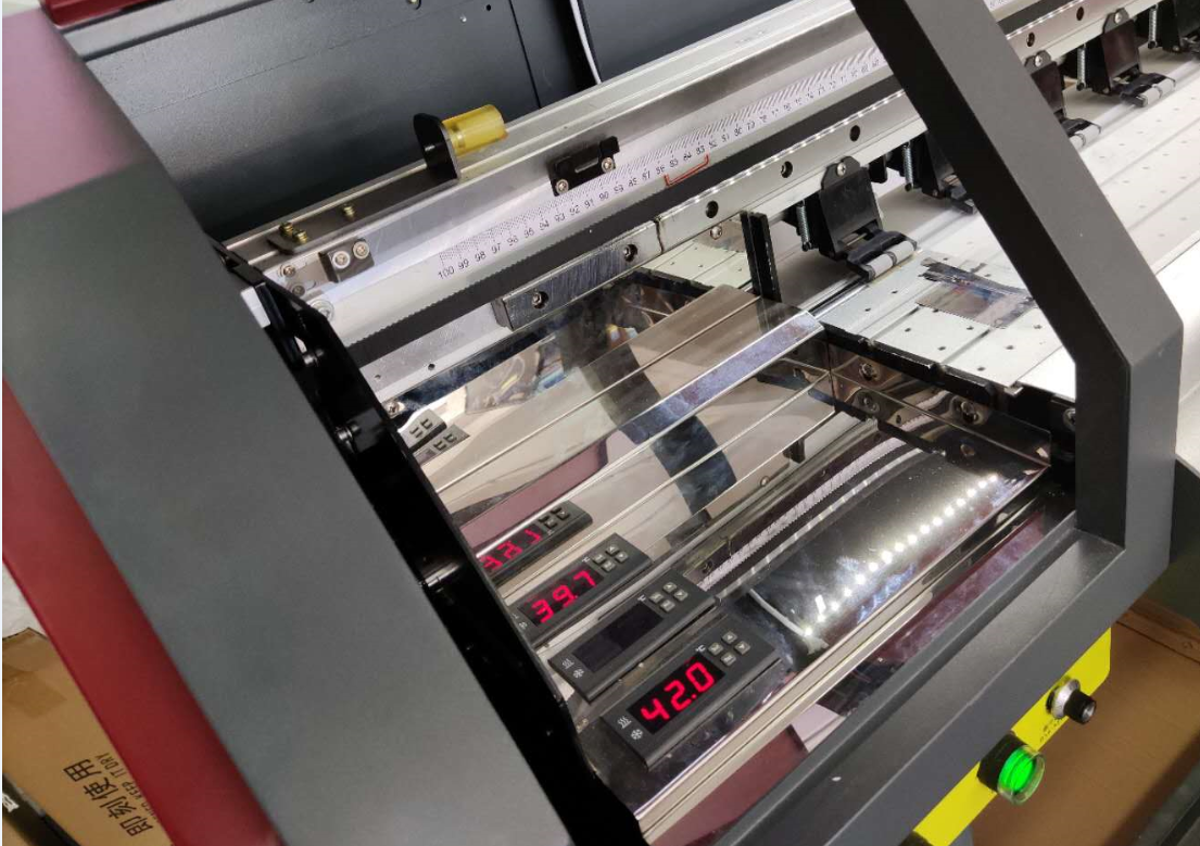 1、打印機上有前中后3段式烘干,打印機的左側(cè)有專門的溫度控制開關(guān)和溫度顯示屏,承托打印耗材的模具一體化平臺下方就是烘干系統(tǒng),摸起來是溫?zé)岬?。在打印的時候,就能夠?qū)D案進行烘干。