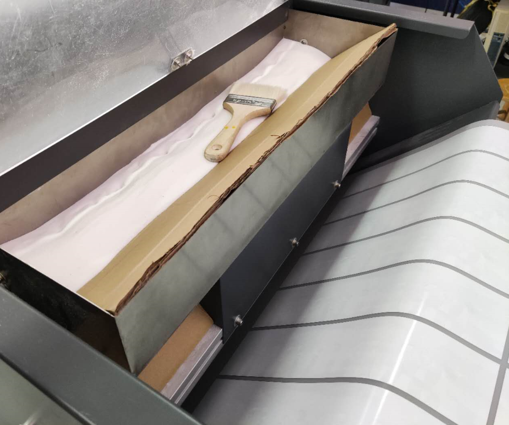 2、打印機打印的圖案輸出到抖粉機進行預(yù)加熱