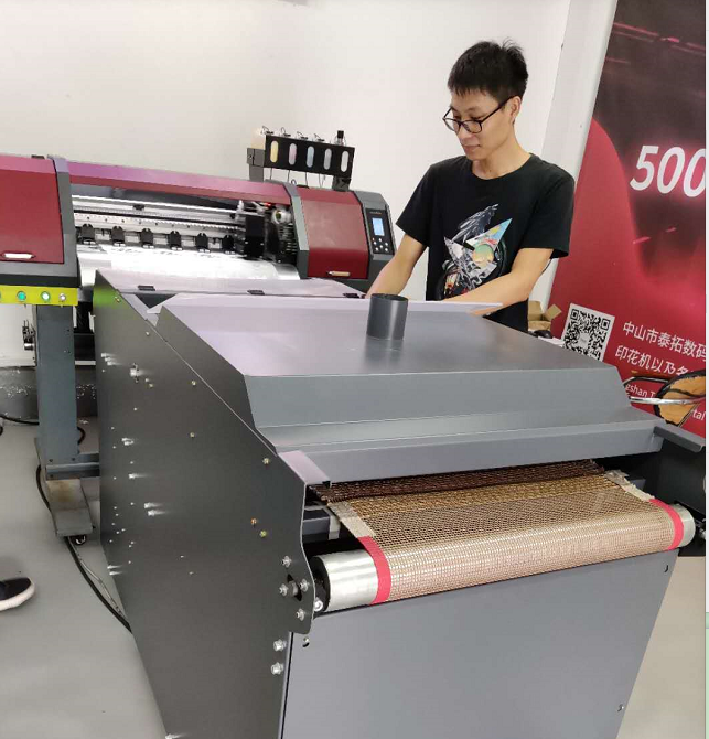 泰拓?cái)?shù)碼的柯式燙畫,只需投資一套燙畫打印機(jī)和抖粉機(jī),基本一次投資到位,占地面積不足一個(gè)車位大小,且是一站式鏤空打印和自動(dòng)抖粉,出來即是燙畫成品,效率很高。