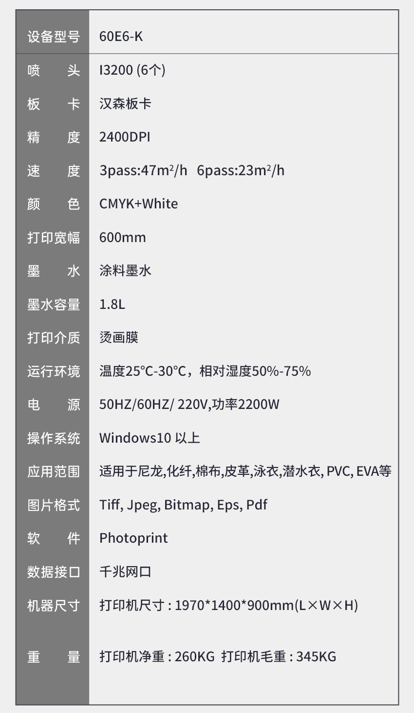 60E6-K 六頭高速白墨燙畫打印機(jī)